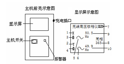 ⑤在显示屏的上方出现“无线高压核相仪”说明主机已开机。