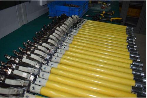 5.2 测试电流,测试较大电流时:在高空钳上下钳口用短导线连接,使上下钳口同时接触,增大电流量。测试较小电流时:在高空钳上下钳口接线处,上钳口接电流线,下钳口接电压线,可一次测试完成电流量和电压的测试。