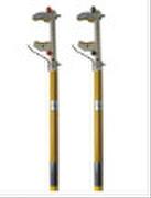 3、用专用操作杆将接线钳举起使钳头略高于接线位置时轻轻靠在接线位置上,依靠接线钳上的导向机构在接线位置上慢慢向下滑动使钳口卡在接线位置上,再慢慢用力(切勿用力过猛)拉动专用操作杆,钳口即夹紧。