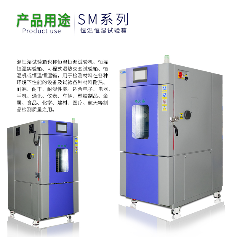 试验箱适用于仪器仪表材料、电工、电子产品、家用电器、汽摩配件、化工涂料、航空航天产品及其他相关产品零部件在高低温湿热的环境下贮存、运输、使用时的适应性试验。该试验设备主要适用于工业产品恒定、湿热交变的可靠性试验,对产品的物理以及其他相关特性进行环境模拟测试,来判断产品的性能,是否仍然能够符合预定要求,以便于产品设计、改进、鉴定及出厂检验用。