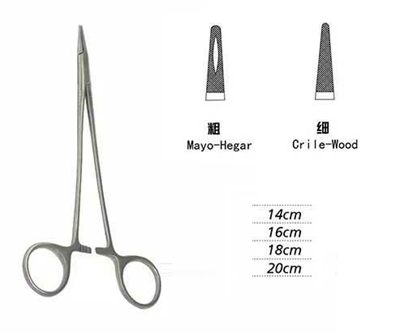 选择合适的长度:14cm,16cm,18cm,20cm(一般大小鼠手术选择14cm、细针)