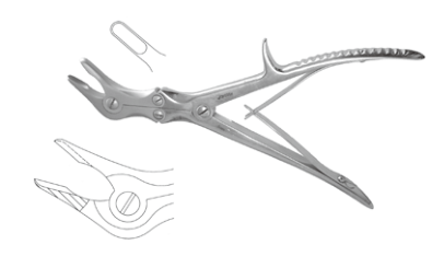 Y62787 咬骨钳,带一个棘突,双关节,22cm,侧角40°,头宽3mm(可订做:头宽2mm)